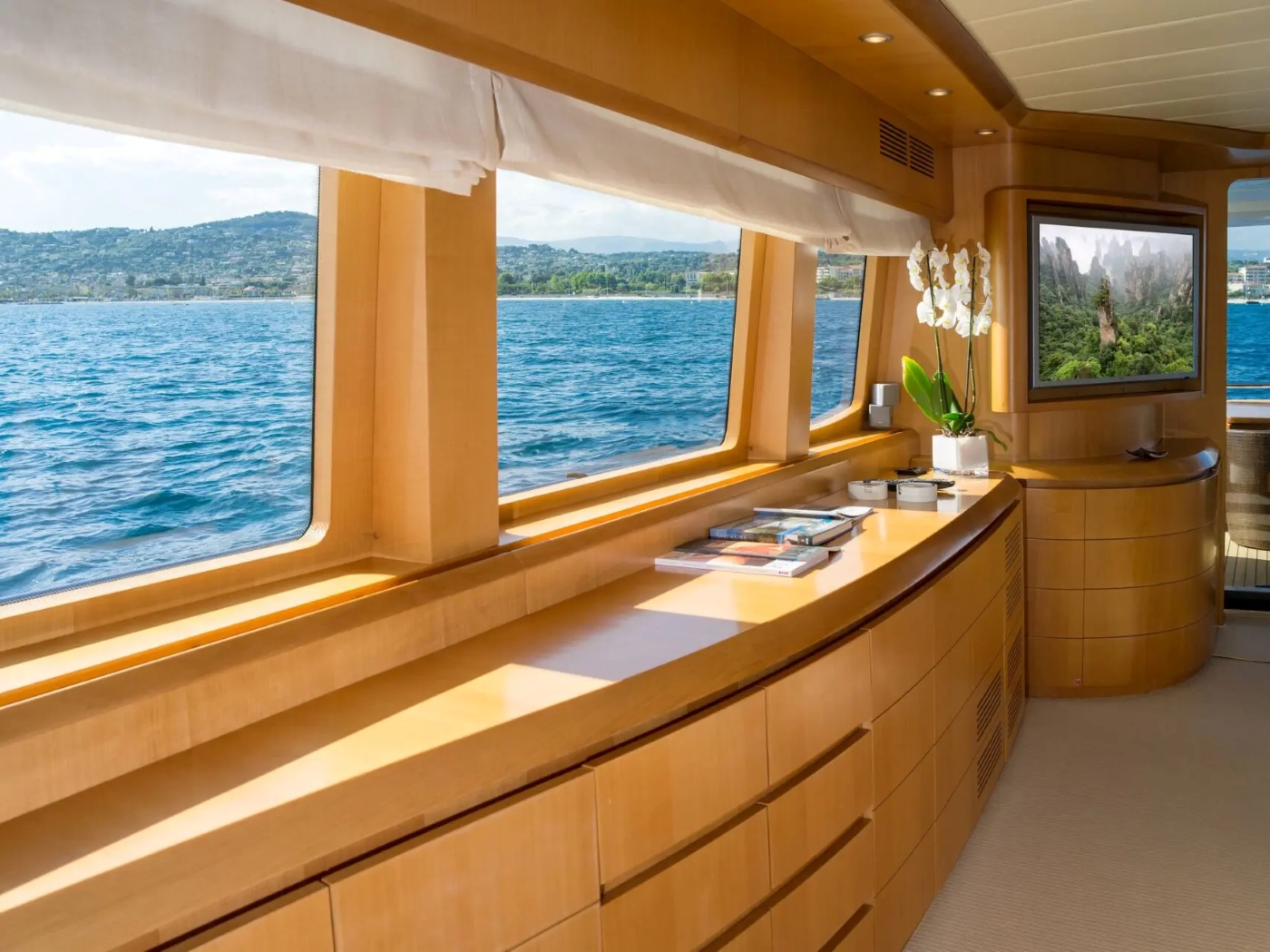 M/Y MEME has a minimalistic welcoming interior featuring light toned wood, cream soft furnishings and light neutral carpets throughout.