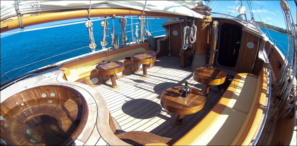 The deck of yacht Stereden Ann Esperanz offers plenty of room to relax in the sun after a day exploring islands, snorkeling, kayaking, deep sea fishing or scuba diving (all with prior arrangements).
