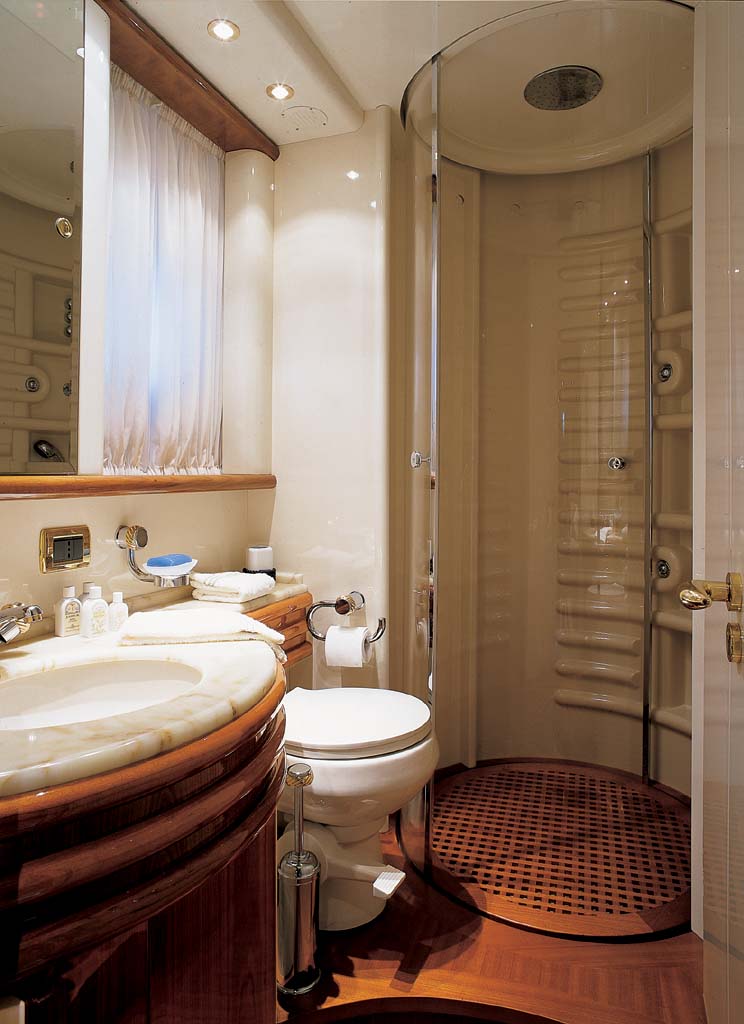 The 2 twin cabins are also equiped with private ensuites and each have a pullman berth. The crew quarters are seperate. This Azimut 74 has tropical air-conditioning, Plasma TVs in the Saloon, the Master and the VIP cabins, ...