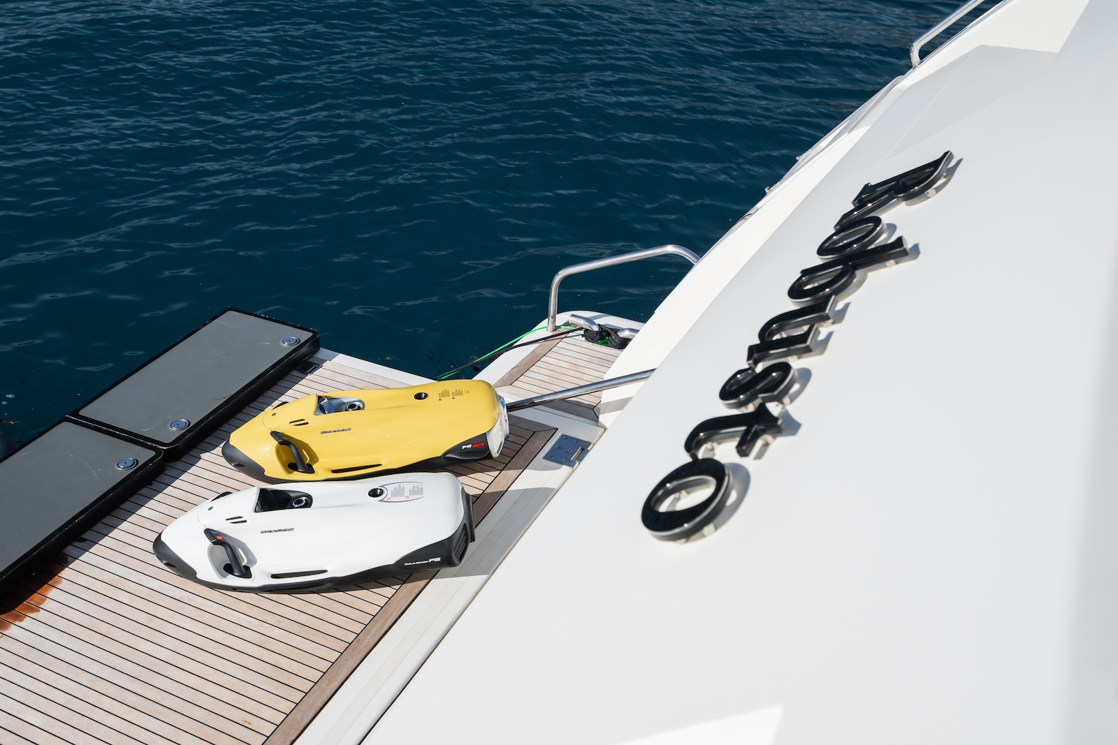 Motor yacht ROBUSTO has generous exterior living, the aft deck is shaded and offers an alfresco dining option and steps ...