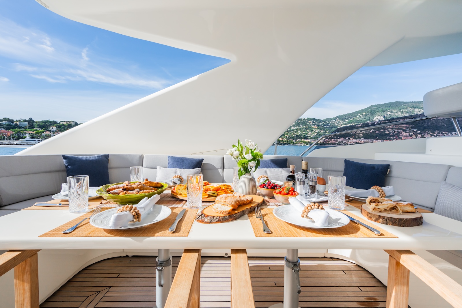 Notable features: Open plan salon ~ On deck master suite ~ Stabilizers ~ Jacuzzi ~ Wifi ~ Water toys
