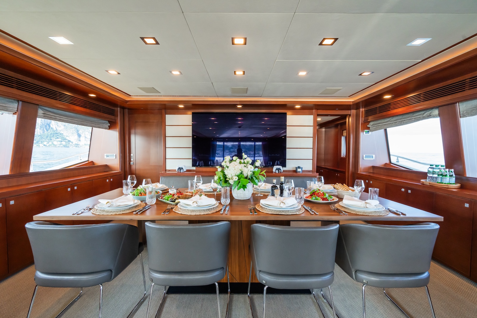 M/Y ROBUSTO has a refined and tidy interior; the salon is bright and airy with light wood ...
