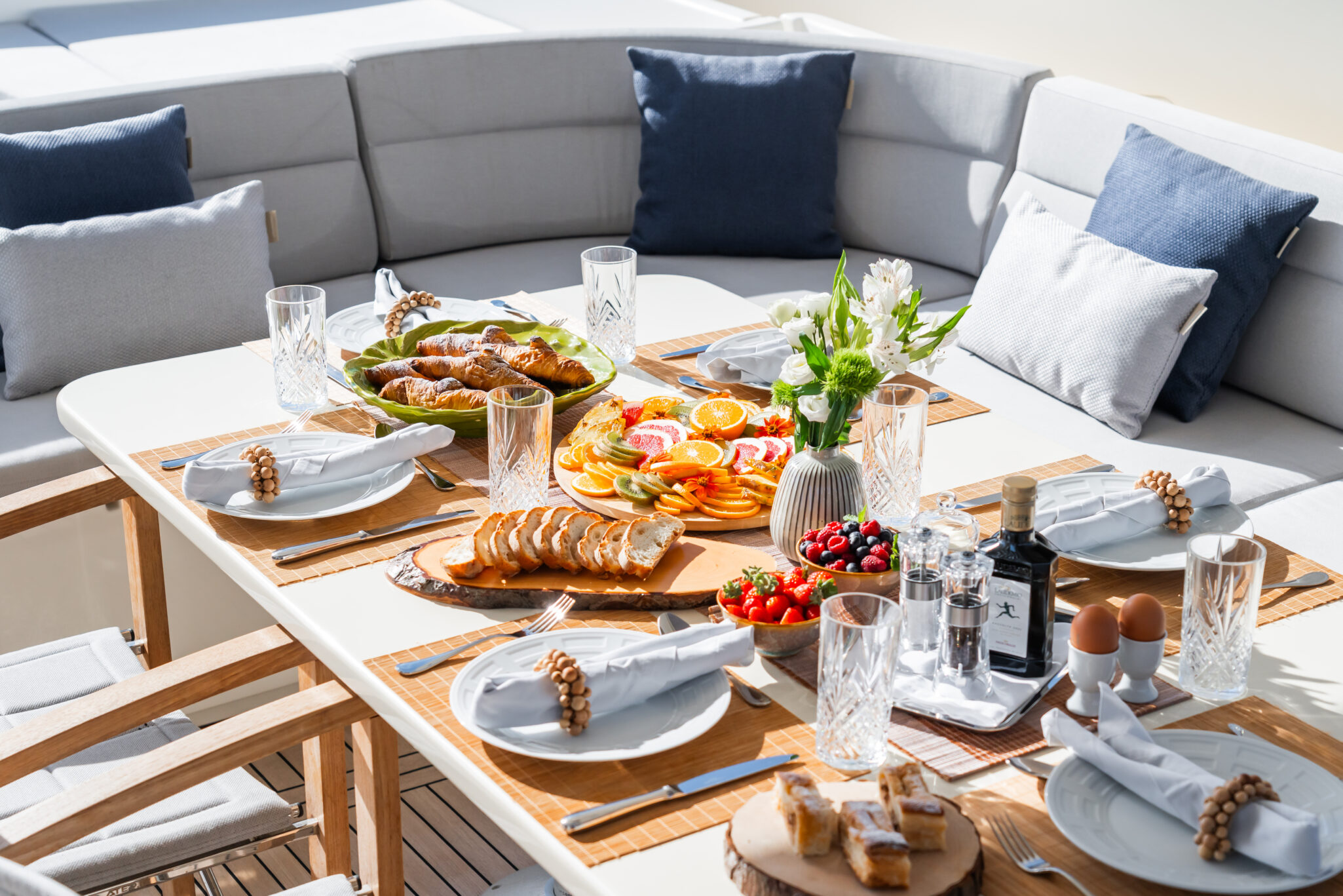 Notable features: Open plan salon ~ On deck master suite ~ Stabilizers ~ ...