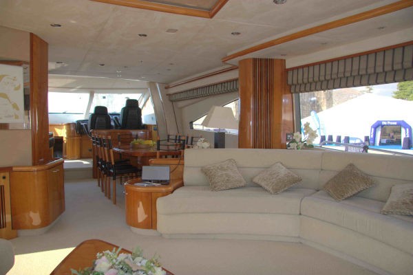 The wheelhouse offers twin seats, with spectator seating. Features include air-conditioning throughout, flat-screen televisions, Hi-fi surround DVD and CD system and radio/CD players.