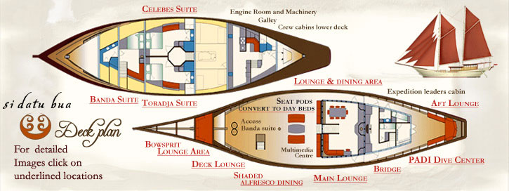 SI DATU BUA gives her charter guests the opportunity to dive or snorkel the best reefs in the world or relax on the amazing teak deck, shaded by the magnificent black sails. In addition, guests can enjoy the finest wines and the most palatable Asian fusion cuisine prepared by her talented Executive Chef.