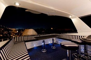 On deck charter yacht BAMA BREEZE offers spacious outdoor living, the aft deck is spacious and features custom fiberglass bench seating and an alfresco dining option, sink and fridge, the space has EZ enclosure for added comfort.
