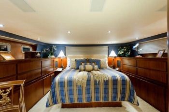 BAMA BREEZE has a comfortable traditional style interior with fine woods and neutral soft furnishings. A formal dining table is forward of the salon in an open plan setting. The entire space is wrapped in large windows allowing for ample natural light.