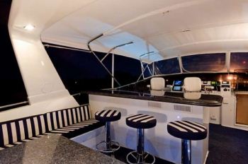 Above the main deck the fly bridge provides a social focal point with custom Black Diamond Granite bar top and stainless steel mounted bar seats, an alfresco dining option, BBQ, refrigerator & icemaker, the space is complete with ...