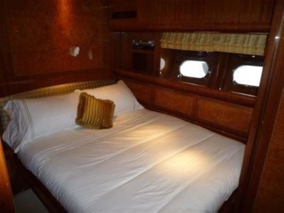Two large sofas in an off white tone are both on port and starboard, an optional dining table is also available on the port side. Further forward a smaller cocktail table is directly behind the 4 helm chairs where guests can enjoy a front row seat to a captains view. Surrounding windows allow ample natural light and optimum sightseeing.