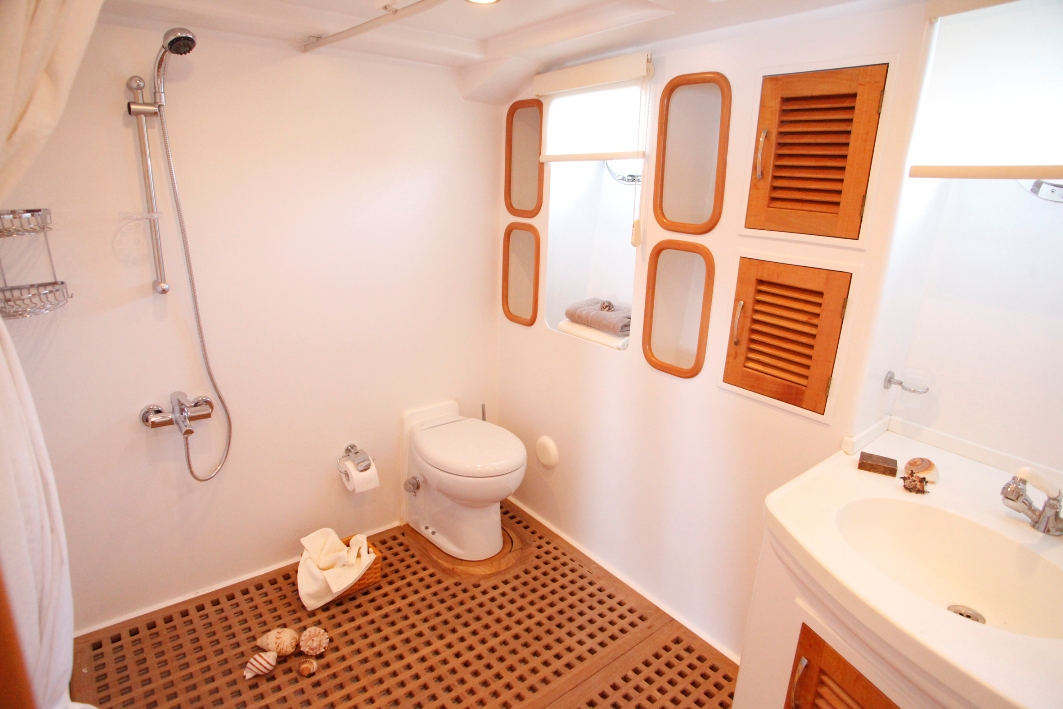 AZMIM can accommodate 10 guests in 5 cabins, the master suite offers a king size bed and love seat, the VIP cabins offers a queen size bed, 2 guest cabins have double beds and a further cabin offers a twin bed with an additional bunk bed. All cabins are en-suite and boast a warm welcome feeling in a tasteful light and airy décor.
