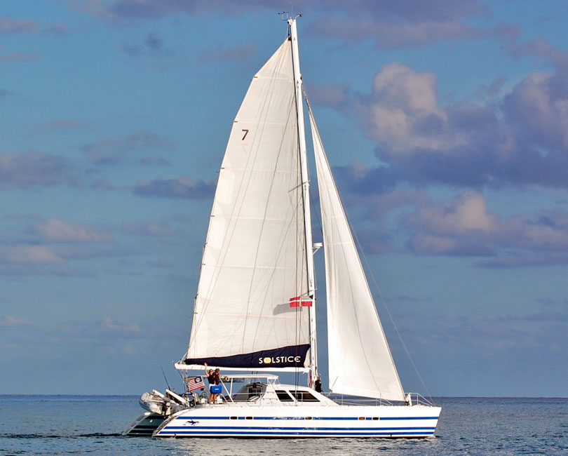 Sailing catamaran SOLSTICE is the popular French award winning Lagoon catamaran design. Built in 1992 she is hull number 7 of only 34 ever built. The yacht underwent a major refit in 2005 and has had multiple upgrades since.