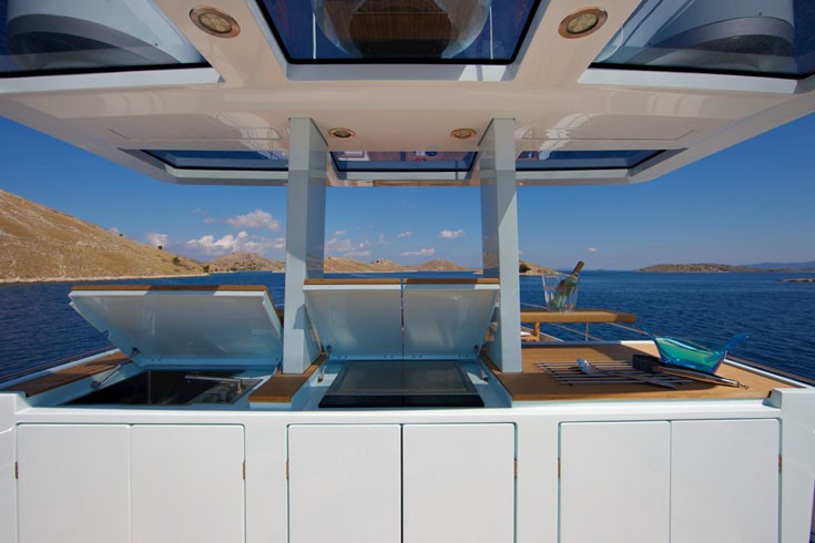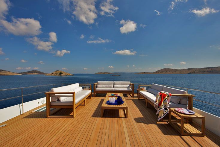 Her maximum beam is of 7.75m (25'5''), while her draft is of 1.75m (5'9''). The 26m luxury yacht Kanga can provide up to 10 charter guests with maximum comfort. She offers four spacious double cabins, with two cabins featuring additional pullman beds. All cabins have en-suites.