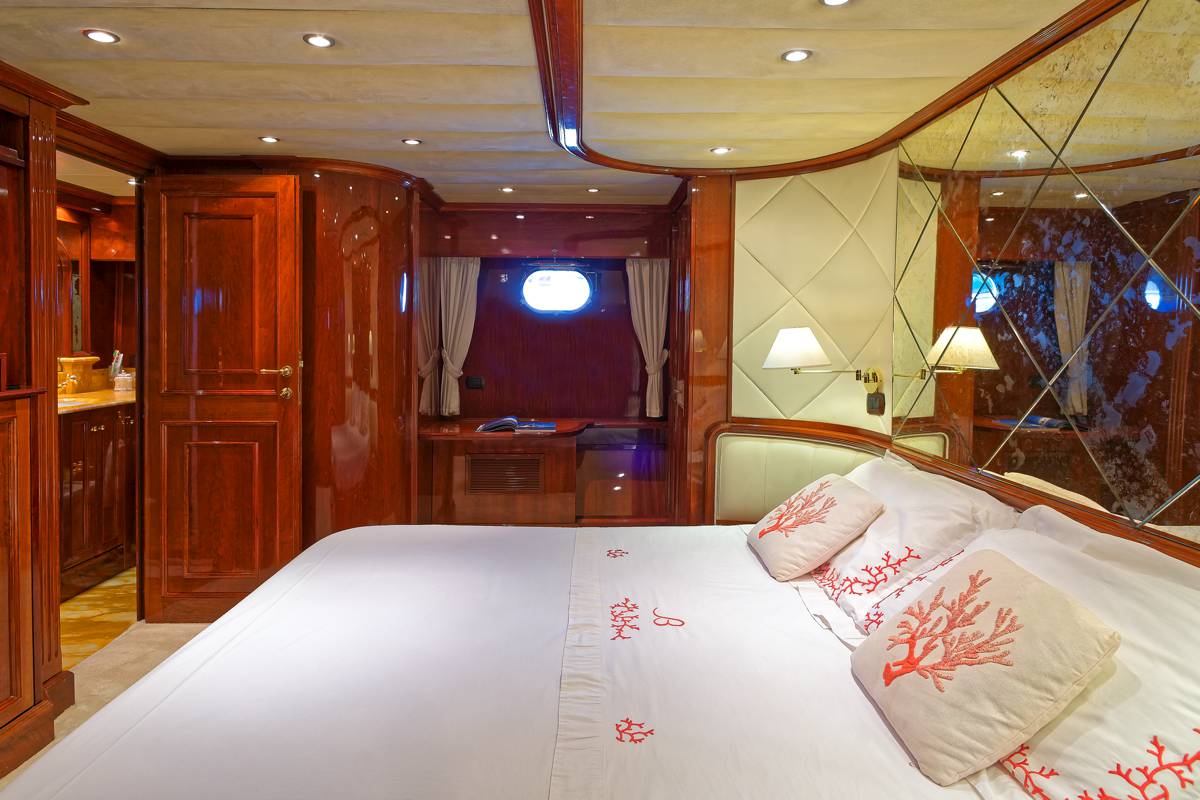 Luxury charter yacht BUGIA offers guests 4 spacious cabins all with en-suite marble facilities. The master cabin is aft and features a double bed, a further 2 cabins offer double beds and a twin cabin offers 2 single beds and a Pullman berth, the cabins are tastefully decorated with a quality Italian flair and signature BUGIA furnishings.