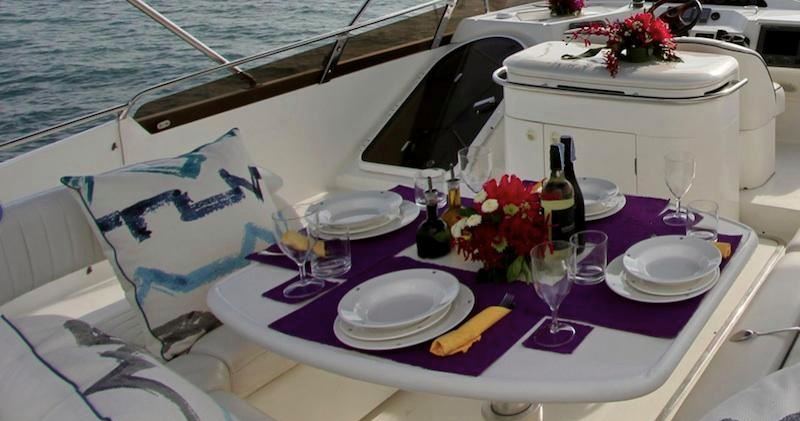 Thailand charter yacht ISABELLA ROSE features flybridge design which offers guests plenty of outdoor living space to enjoy the tropical sun. Al fresco Dining is offered on the aft deck, that has a hard top roof of the fly bridge for protection, and dining is also offered on the fly bridge deck, covered by a Bimini top.