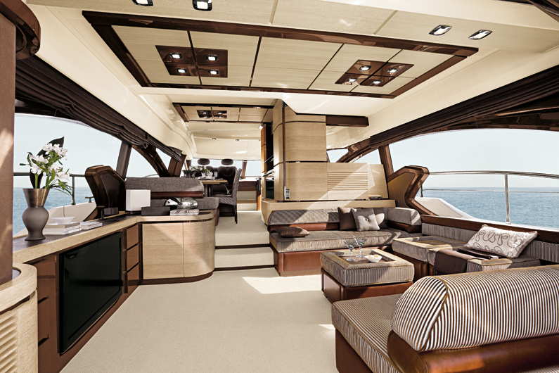 The salon is open and airy, full length windows that create the feel of additional space. Soft tones of subtle cream blend with fine regal browns give a refined atmosphere of ultimate comfort. On the starboard side 2 plush sofas ...