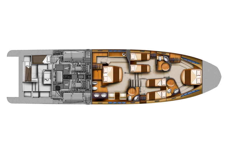On the starboard side 2 plush sofas invite relaxation, on the port side a large flat screen TV ensures great entertainment.
