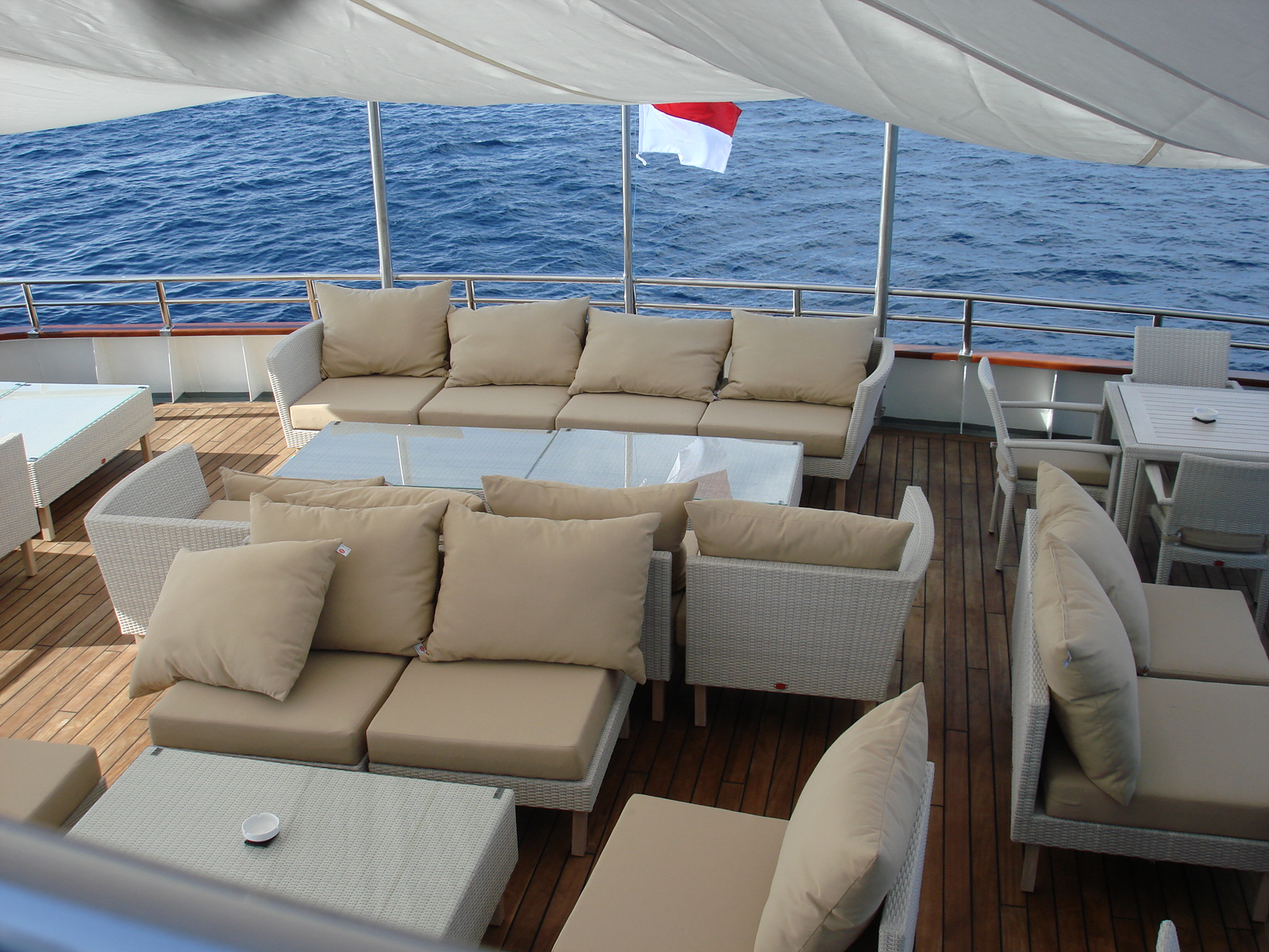The 58 metre SALILA motor yacht is able to accommodate 20 charter guests in 10 cabins including 2 super luxurious master suites with baths and sea views and a further 4 double and 4 twin guest cabins.