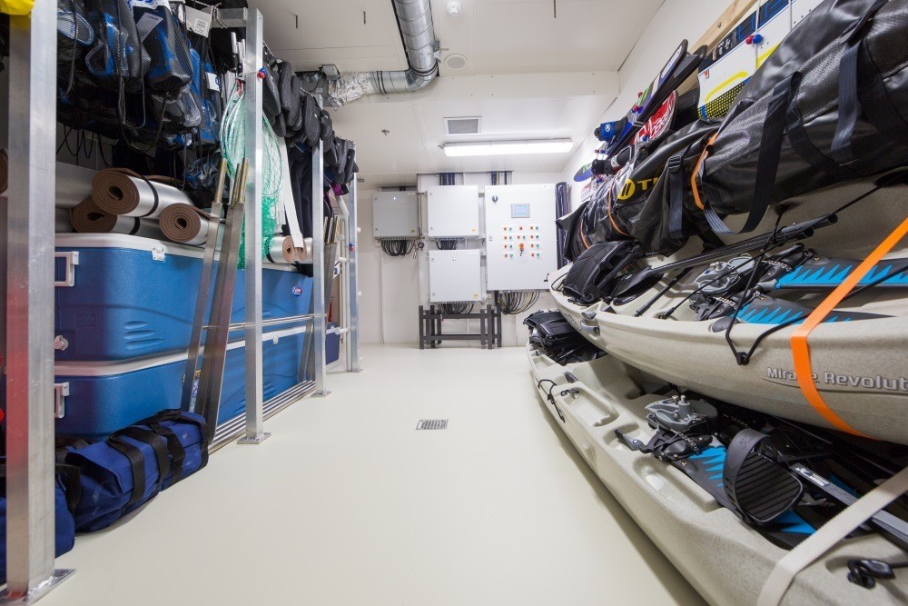 After a meal, guests can rest and watch a film together in the on board cinema to starboard.