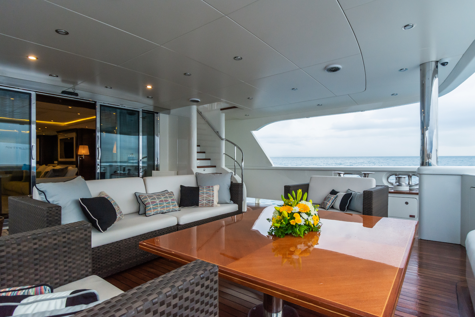 Her superior deck space including a flybridge jacuzzi, classic yet contemporary décor, luxury accommodation for up to 11 guests and dedicated crew of nine, make her the ideal choice for an unforgettable charter.