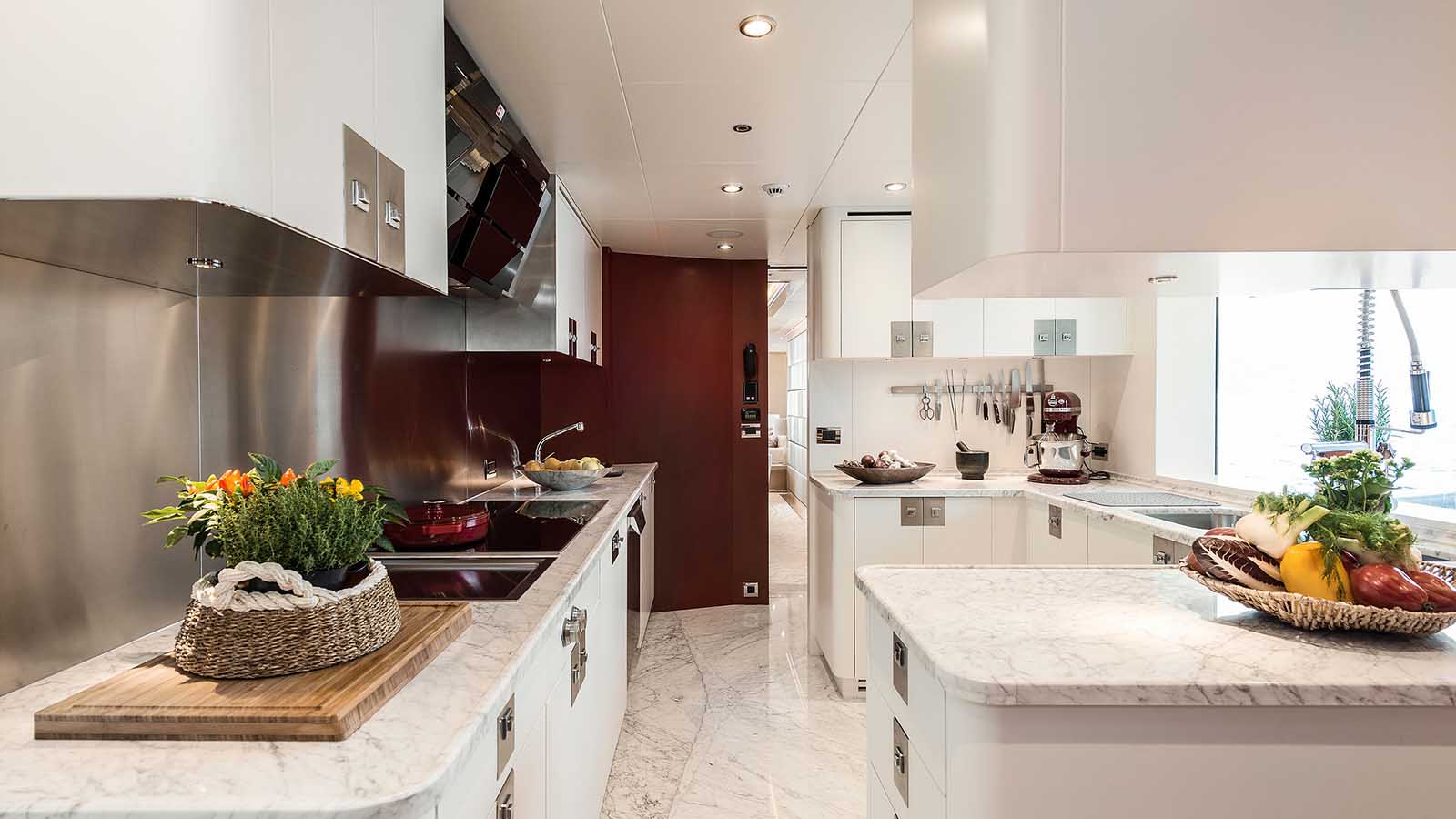 Measuring 45 meters in length, Atomic superyacht's exterior styling is by Paolo Scanu, while her interior design is by Franck Darnet. Her naval architecture is by the yard's in-house team, in partnership with Karatas Yacht Design.