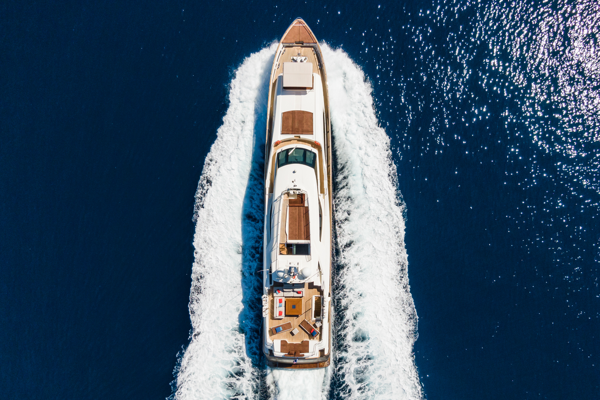 The spaces are filled with sunlight through the expansive windows on the upper deck and fold down balconies in the main salon. The blend of natural woods and warm tones further illuminate the fresh and airy interior.