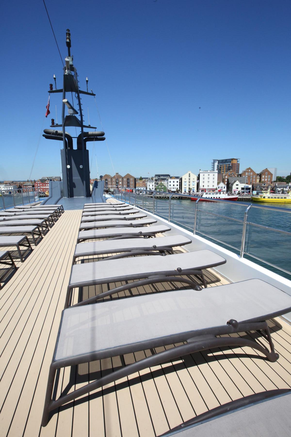 She can sleep an impressive number of 72 guests in 36 cabins and carries an impeccable crew of 32 professionals.