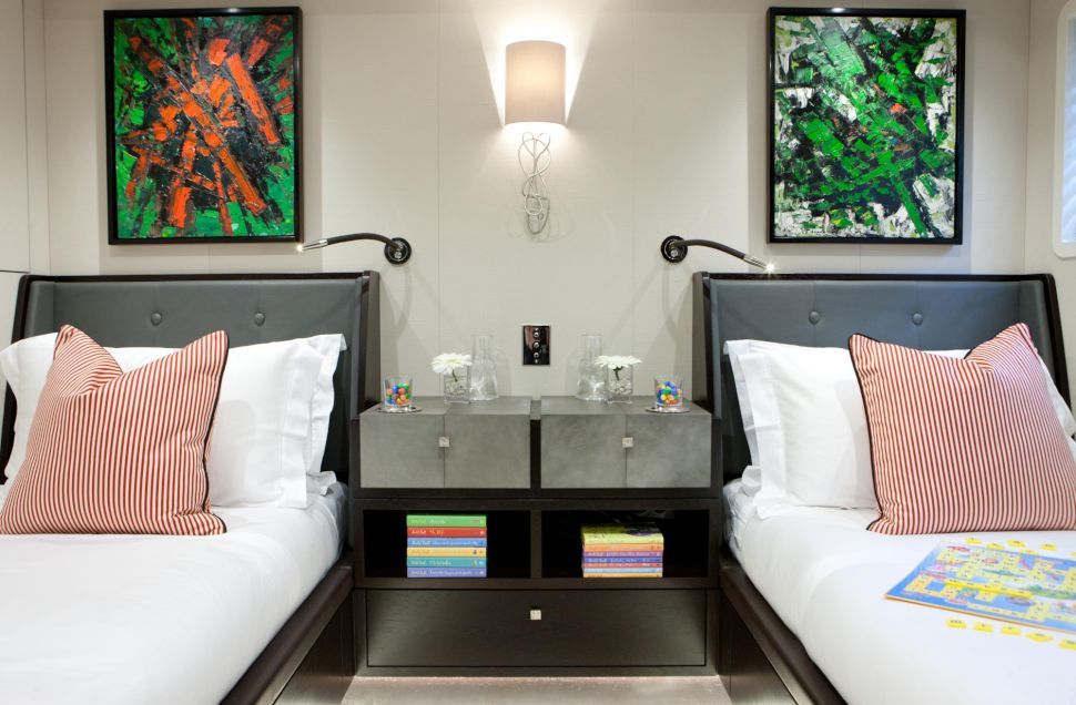 The hull is a solid steel displacement build, measuring 53.01 m (173' 11") and can accommodate 12 guests in 8 deluxe cabins, while she has a professional crew of 14.