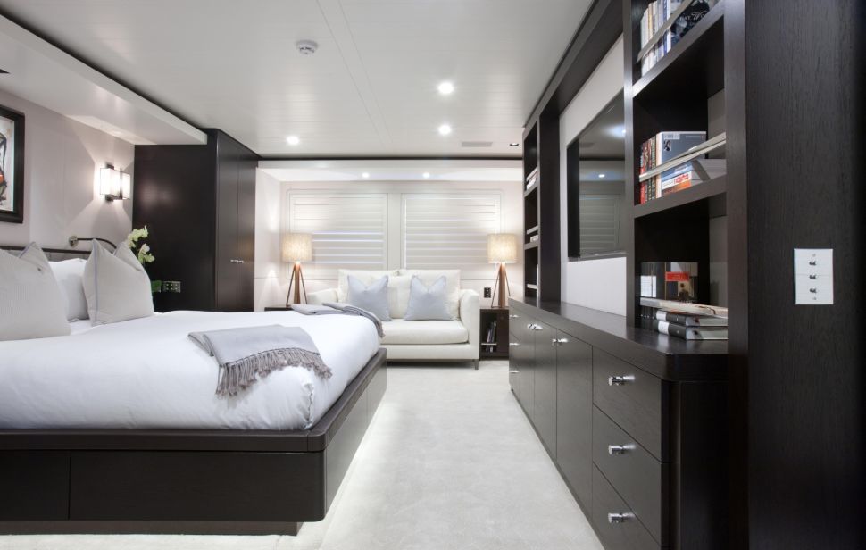 The hull is a solid steel displacement build, measuring 53.01 m (173' 11") and can accommodate 12 guests in 8 deluxe cabins, while she has a professional crew of 14.