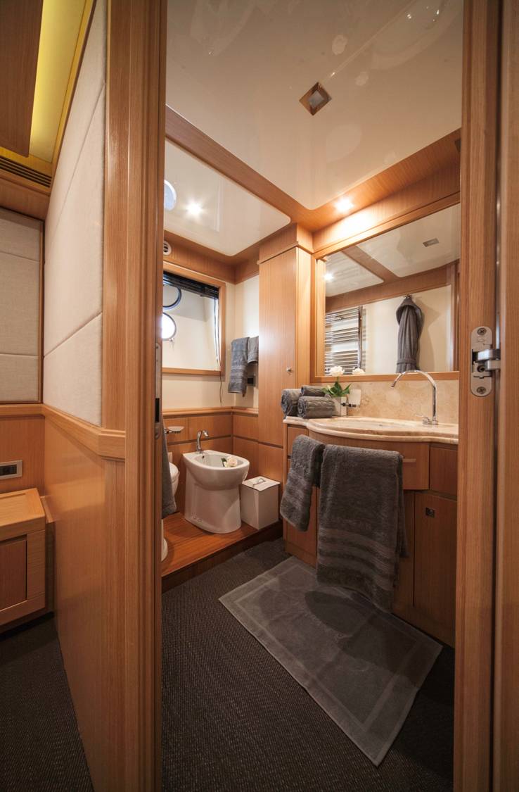 Two double VIP cabins offer mirror image double cabins with double beds, walk in wardrobes and en-suite facilities, while a further 2 cabins have 2 side by side single beds and an upper Pullman berth each, both with en-suite facilities.