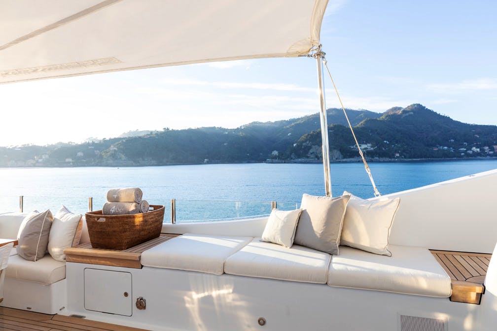 The accommodation provides for 12 guests over six cabins, with an additional twin cabin behind the Master suite for children or staff.