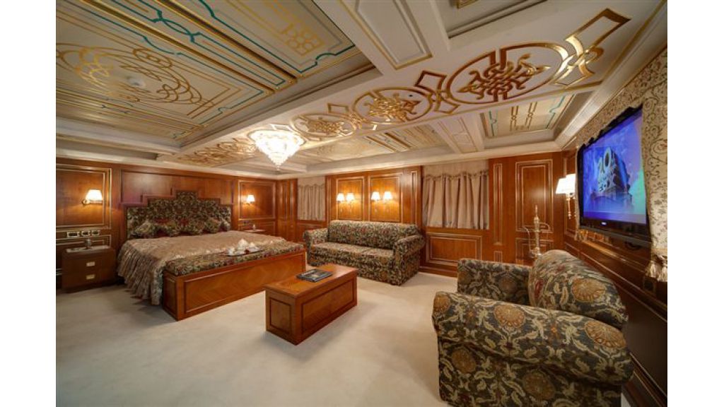 With a beam of 16.20 metres (53'15''), motor yacht Loaloat Al Behar is an extremely spacious and comfortable vessel, featuring off-white exterior and beautiful, elegant ornate interior with Crystal chandeliers.