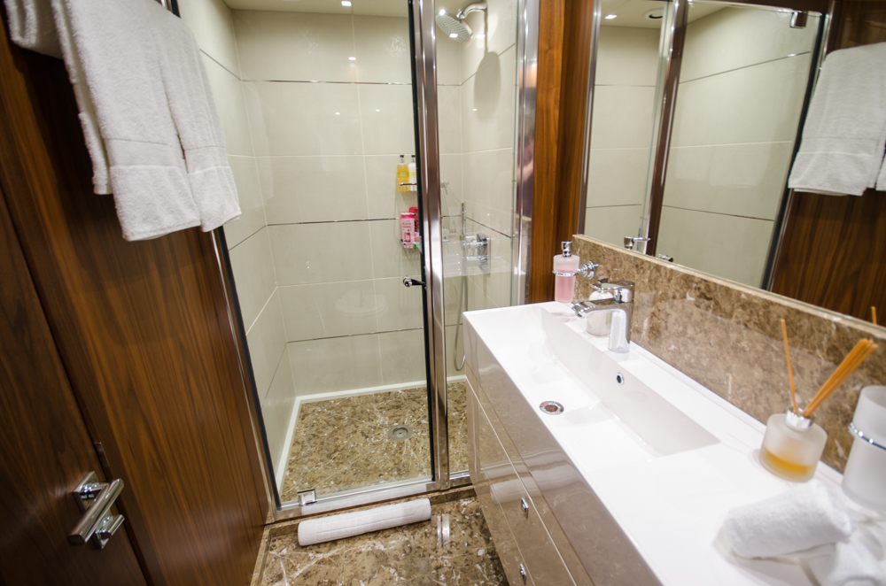 Sunseeker 28 superyacht OASIS can accommodate up to 8 guests in style. There are 4 comfortable suites, including an Owner's cabin, a VIP cabin, a double cabin, and a twin cabin.