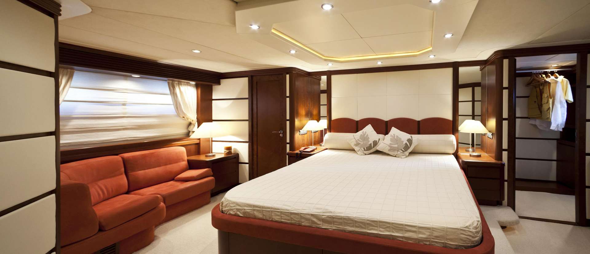 Boasting a bulbous bow and hydraulic NASA designed fin stabilizers, the yacht can cruise in ultimate comfort free of noise and vibration.