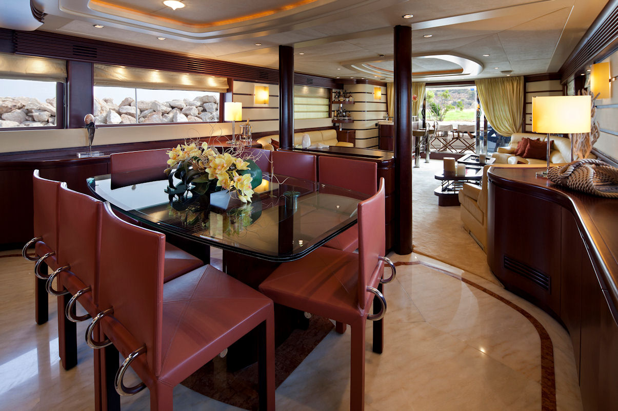 Stepping aboard LADY MOH, the aft deck is partially shaded and features an alfresco dining option at a beautifully appointed oval table with custom built in seating and chairs. The transom offers port and starboard steps leading ...