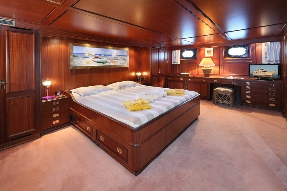 Superyacht Sprezzatura can accommodate up to 8 guests, offering a spacious, king-sized master cabin, along with two large twin cabins. All of these feature en-suite bathrooms.