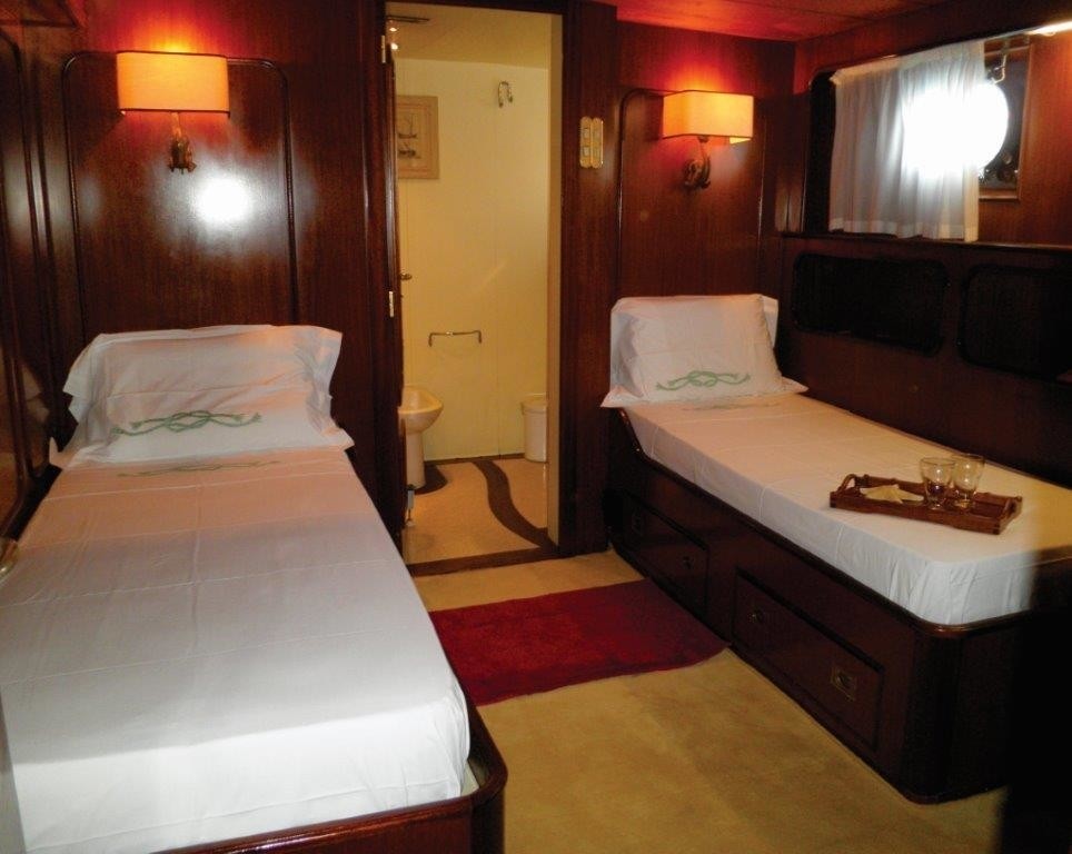 The total number of 8 guests can find maximum comfort aboard Sprezzatura superyacht. The vessel provides spacious, king-sized master cabin, along with two large twin cabins. All of these have en-suite bathrooms.