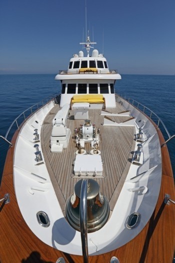 All of these have en-suite bathrooms. There is also a forward intimate double cabin with en-suite bathroom, ideal for children or a nanny. She also sleeps a professional crew of 6.