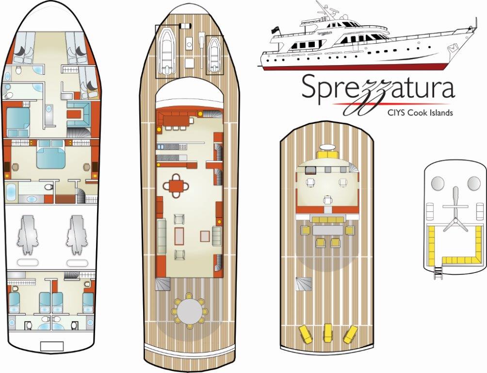 The total number of 8 guests can find maximum comfort aboard Sprezzatura superyacht. The vessel provides spacious, king-sized master cabin, along with two large twin cabins. All of these have en-suite bathrooms.
