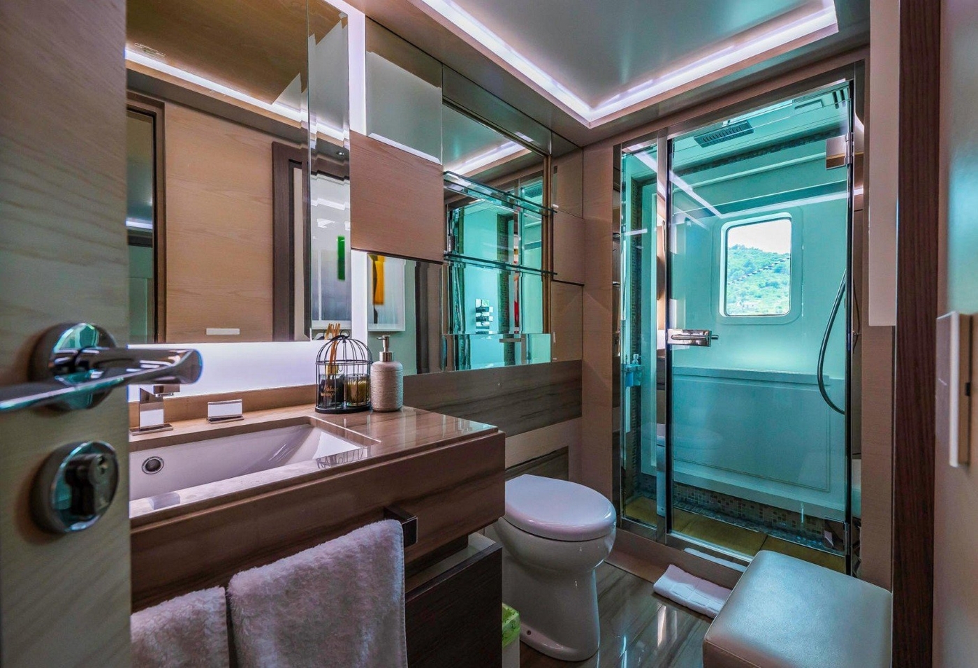 These comprise a master cabin as well as two large VIP cabins and two guest cabins, each with en-suite bathroom.