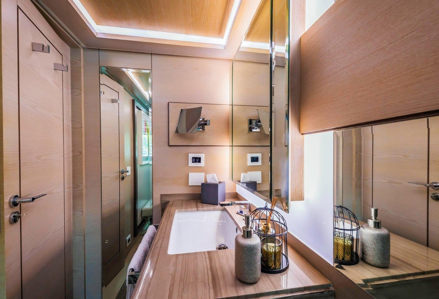 These comprise a master cabin as well as two large VIP cabins and two guest cabins, each with en-suite bathroom.