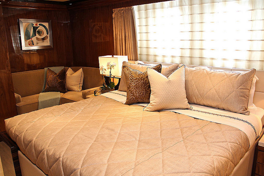The interior design represents both modern and timeless decor. The main salon is an open plan, with a lavish dining table and a lounge area. The guest will enjoy relaxing on plush furniture while having a chat with a cup of coffee and sipping some delicious cocktails.