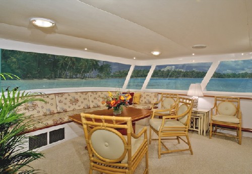 Motor yacht PYEWACKET enjoys the outdoor amenities with wrap around decks.