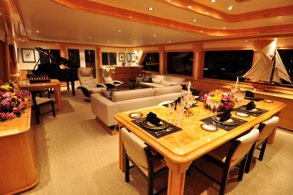 She has a beautiful salon with comfortable seating, a wet bar and a full entertainment system. Further forward and adjoining the main salon is the formal dining area.