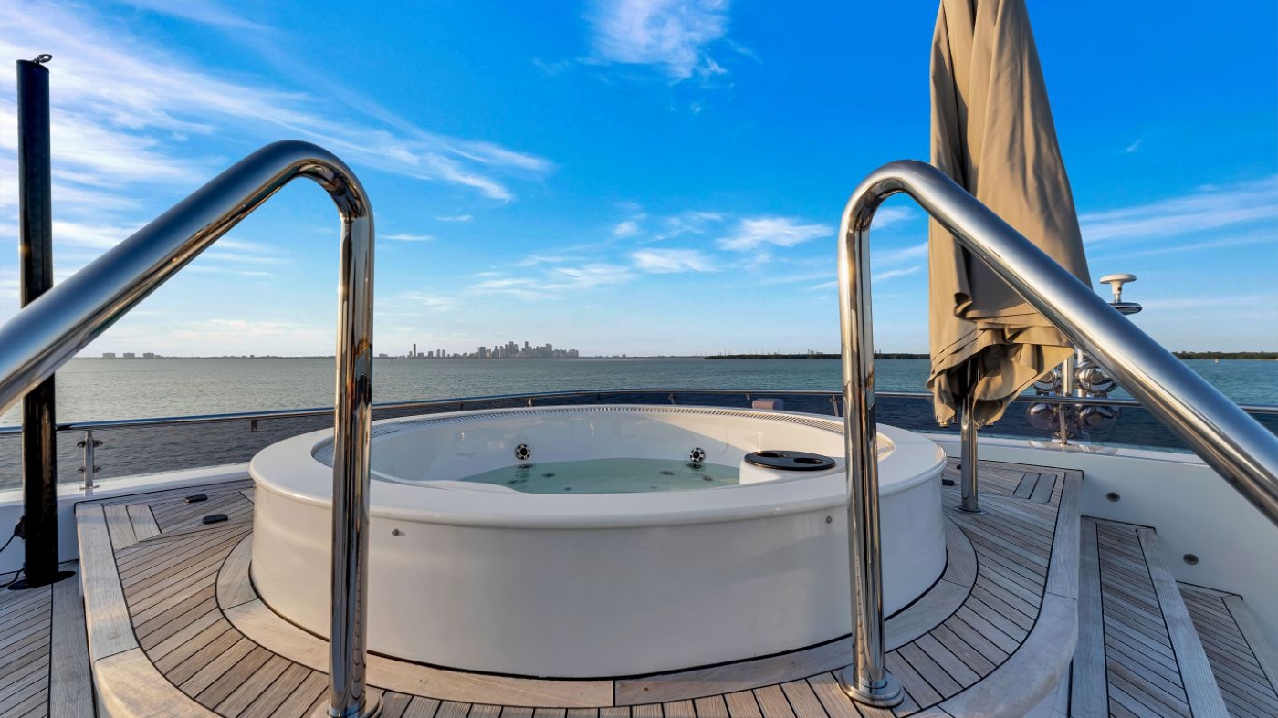 Westport yacht TRANQUILITY is the perfect yacht for the Bahamas with plenty of exterior areas to relax.