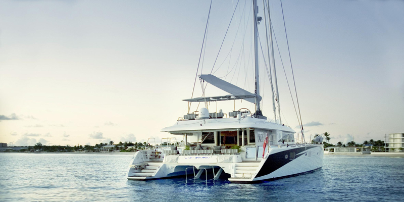 Charter catamaran LADY BOU BOU features a large shaded cockpit with an alfresco dining option, bar area, aft seating and easy access to the 2 extended swim platforms. The foredeck invites guests to lounge in the hammock style trampolines, the perfect place to steal away with a book.