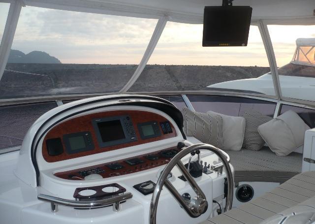The Master suite is amidships with a queen size center lined bed, Tempurpedic mattress, 800 thread count Egyptian cotton sheets, a choice of feather pillows or low density pillows and an en-suite facility with shower. The VIP cabin is forward with a queen size bed, 800 thread count Egyptian cotton sheets and shared facilities.