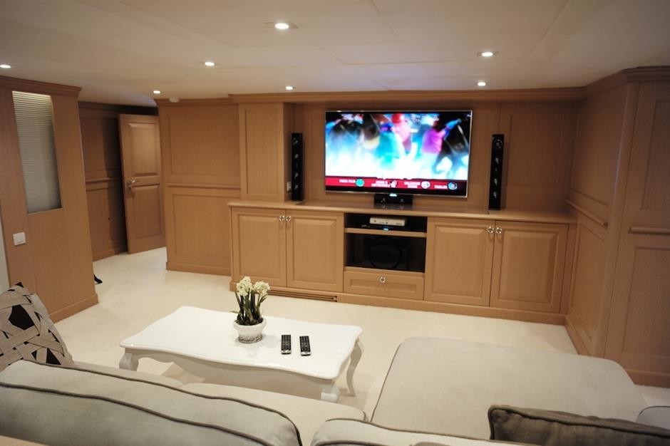 She is RINA as well as MCA LY2 classed. Her maximum beam is 8.50m (27.9ft), and her draft is 2.15m (7.1ft). Superyacht PALMARINA offers six en-suite deluxe cabins for up to 12 guests. The master suite is on the upper deck aft of the pilothouse boasting a full beam cabin, king size bed, panoramic views and private deck.