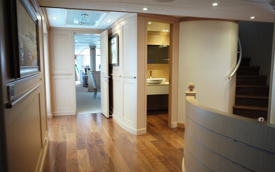 The exterior design is the work of the Orkun shipyard and offers a tri-deck layout, ample deck space and an optional helipad. The main deck features a large aft deck, with an alfresco dining option. Further aft, the full beam extended swim platform is ideal for making use of the many water toys on offer.
