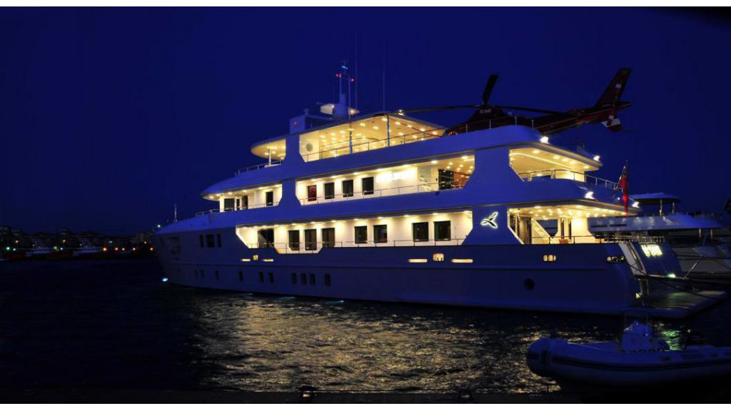 The exterior design is the work of the Orkun shipyard and offers a tri-deck layout, ample deck space and an optional helipad. The main deck features a large aft deck, with an alfresco dining option. Further aft, the full beam extended swim platform is ideal for making use of the many water toys on offer.