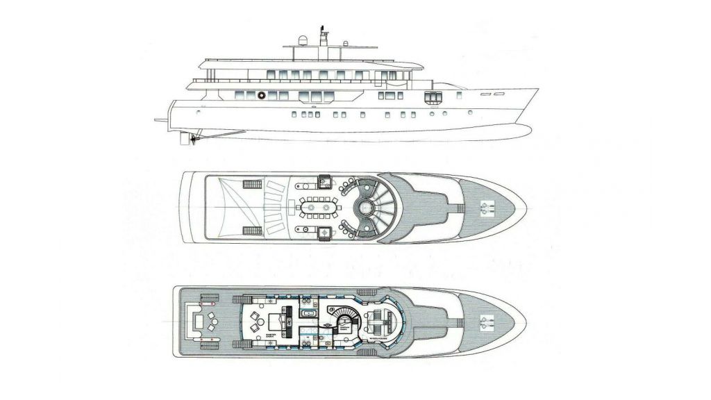 The exterior design is the work of the Orkun shipyard and offers a tri-deck layout, ample deck space and an optional helipad. The main deck features a large aft deck, with an alfresco dining option. Further aft, the full beam extended swim platform is ideal for making use of the many water toys on offer.